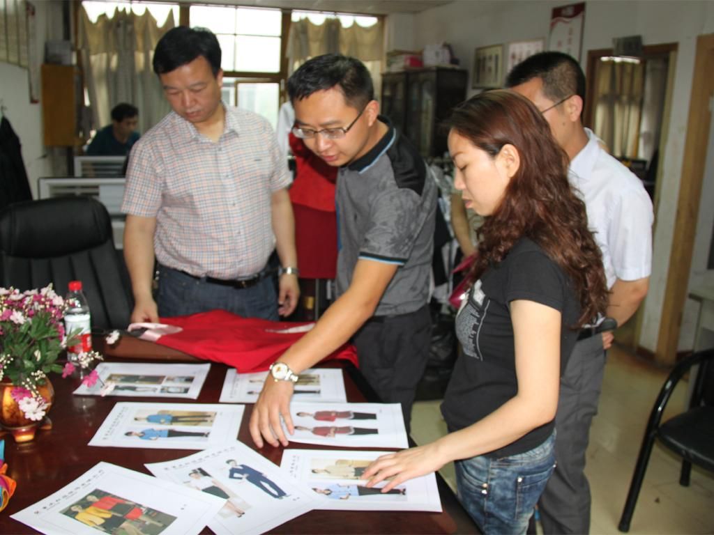 2014年6月20日上午,潼南大酒店總經(jīng)理曾總,辦公室楊主任等領(lǐng)導(dǎo)一行親蒞紅冠服飾就潼南大酒店全體員工工裝換裝事宜進(jìn)行實(shí)地考查,在公司總經(jīng)李紅兵,設(shè)計部經(jīng)理李成靜熱情接待下,對公司樣品展廳,生產(chǎn)車間進(jìn)行了考查。
