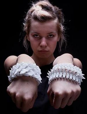 近日,在以色列一位剛畢業(yè)的設(shè)計(jì)專業(yè)學(xué)生Nitzan Kish開發(fā)出名為“Me, Myself &I”的服裝項(xiàng)目,該項(xiàng)目重視的不是華麗而是服裝的防衛(wèi)功能,這導(dǎo)致了一個華麗的、但是稍微有點(diǎn)威脅性的自衛(wèi)式女性服裝。