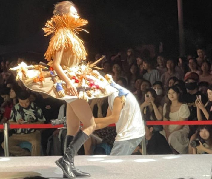 此次畢業(yè)作品是學(xué)校首次以地方特色文化為設(shè)計要素作為同學(xué)們的創(chuàng)作題材,同學(xué)們深入了解和感悟特色文化的精髓,并以服飾文化所展示出來,這為創(chuàng)作打開了新的思路?,F(xiàn)場墊江牡丹花、竹編、美食等傳統(tǒng)元素與時尚服飾相結(jié)合,為觀眾帶來一場視覺藝術(shù)盛宴。